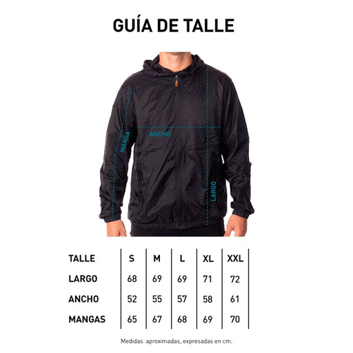 ◦ Cirée opaco ultraliviano con tratamiento de repelencia al agua 100% poliéster. ◦ Cierre frontal con tira cierre. ◦ Capucha con cordón elástico y tancas plásticas. ◦ Bolsillos delanteros con cierres termosellados. ◦ Puños elásticos.