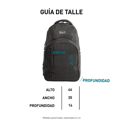 ◦ Mochila. ◦ Cordura de media densidad. ◦ 100% Poliéster. ◦ Bolsillo frontal con cierre. ◦ Compartimiento porta laptop. ◦ Tiracierres plásticos. ◦ Cinta frontal con deslizador de ajuste. ◦ 15 Litros aprox. ◦ Producto importado.