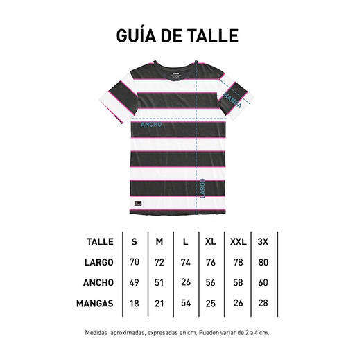 ◦ Remera manga corta de Jersey rayado 100% algodón. ◦ Regular Fit. ◦ Cuello tejido ribb 1x1. ◦El modelo de la foto mide 1,80m y usa un talle L.