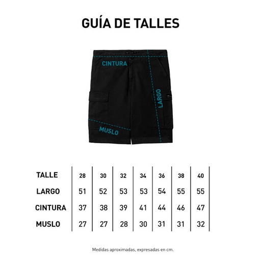 ◦ Bermuda cargo. ◦ Gabardina con elastano. ◦ Composición 98% Algodón 2% Elastano. ◦ Cintura rígida con botón presilla personalizado. ◦ Cierre YKK en cartera. ◦ Bolsillos laterales avanzados. ◦ Bolsillos cargo planos. ◦ Largo 19".