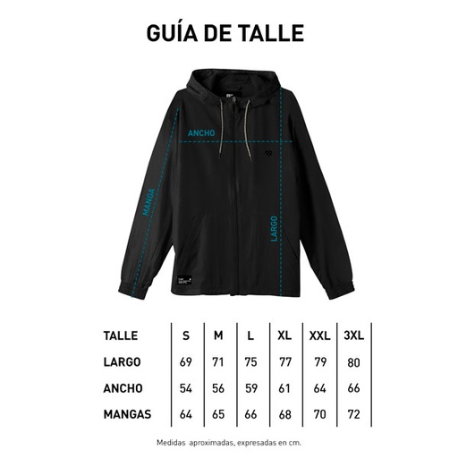 ◦ Campera Rompevientos. ◦ Cireé opaco. 100% Poliéster de media densidad. ◦ Estampa en altura. ◦ Cierre YKK Aquacheat. ◦ Forreria interna de Mesh. ◦ Puños con elástico. ◦ Capucha con cordón de ajuste refractario. ◦ Etiquetas de marca tejidas. ◦ Producto nacional. ◦ Materia prima importada.