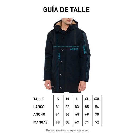 ◦ Campera de abrigo con tratamiento repelente al agua, interior con corderito sintético. Tacto suave. ◦Cartera frontal con doble cerramiento de botones de pasta y cierre diente de perro al tono.◦Bolsillos frontales con tapa. ◦ Capucha con cordón de ajuste, te permite cambiar tu estilo y cobertura en un solo movimiento. ◦ Etiquetas de marca tejidas. ◦ Fit regular. ◦ Composición: Taslon 100% Poliéster. 75D. ◦ Producto importado.
