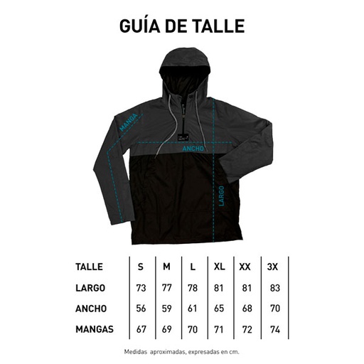 ◦ Anorak de cirée con terminación mate 100% poliéster. ◦ Repelencia al agua. ◦ Interior de red y tafeta en mangas. ◦ Cierre termosellado. ◦ Puños elásticos. ◦ Capucha con cordón reflectivo de ajuste.
