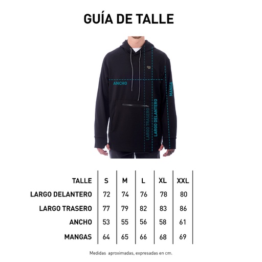 Estampa a un color en frente LOGO. Frisa deportiva. 100% poliéster. Bolsillo canguro con cierre termosellado YKK.