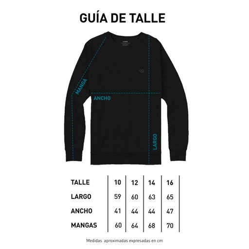 ◦ Buzo cuello redondo de frisa esmerilada y gamuzada. Tacto suave. ◦ Estampa a 1 color en frente. Tinta con base soft. ◦ Cuello, puños y cintura de ribb complemento. ◦ Etiquetas de marca tejidas. ◦ Composición: 50% Poliéster 50% Algodón. ◦ Fit regular. ◦ Producto nacional.